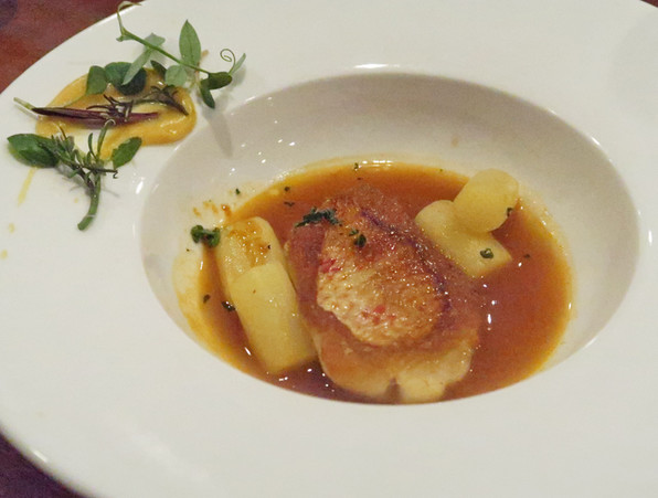 ●魚のパリパリローストはスープ仕立て(少しスパイシー)でした。