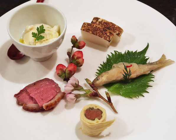 塩ひとつでも、うに塩、桜塩、大徳寺納豆塩、マルドンといった具合に素材に合わせて変化をつけてあり、お手間と工夫が感じられて感動深いコースでした。