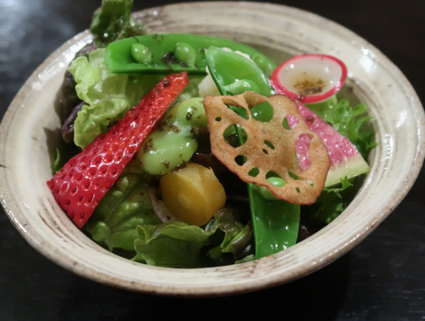 たとえばサラダの葉っぱでも、「息をしているなこの葉っぱ」と思わせ、伺ってみたら、「鯛のお造りをつくる気持ちで葉っぱを丁寧にちぎっていっている」ということでした。どこまでもすごい料理でした。少人数でのクラブエリーでしたが、おいしさに集中して味わうことができてよかった。また次、夏をお願いしてきました。全員がリピート・・・喜んでくださってうれしかったです(^o^)(^o^)