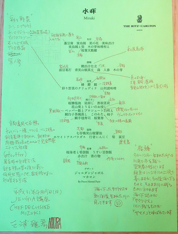 ●4月15日(月)は半年ぶりのJEUGIA講座で、ザ・リッツ・カールトン京都「水暉」さんにお世話になりました。