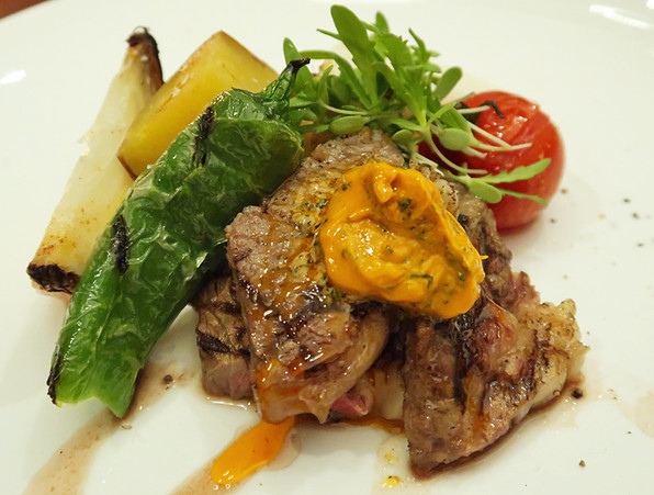 ●リブアイのグリル、カフェドゥパリバターと。