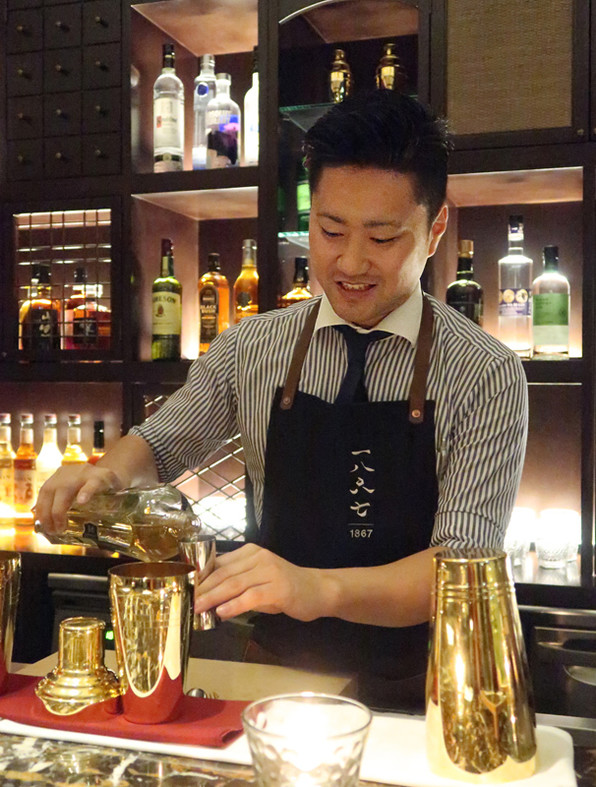 ●バーテンダーの山﨑創世(やまさきはじめ)さん。以前は大津で8年ほど「バンズ」という自分のお店を持っていらしたということです。