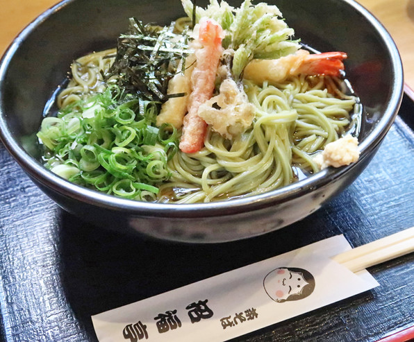 ●先日急に暑くなった日、茶蕎麦を使った、夏の冷たい麺です。