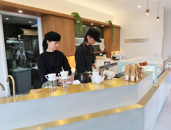 ●すっきりシンプルで瀟洒な店内、窓際には3テーブル・6席あって、その場でお菓子をいただけるのがいいです。
