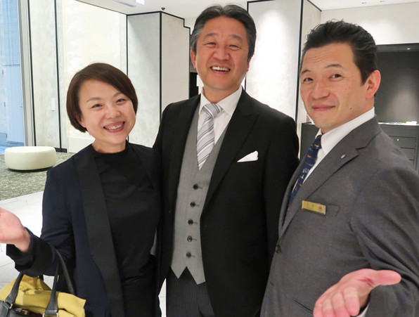 ●JR西日本ホテルズ総料理長にして常務取締役、ホテルヴィスキオ京都運営部長の佐藤伸二さん(中央)、広報の今村克二さん、大阪のホテルグランヴィアとホテルヴィスキオからの高田佳江さん、ありがとうございます(^o^)/