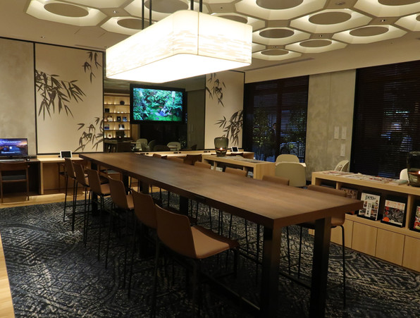 ●部屋にデスクがない分、宿泊客が使えるラウンジというスペースがあり、wi-fiも使えて仕事ができるようになっています。美しい本や観光情報資料の閲覧もできます。くつろげるソファやテーブルもありました。