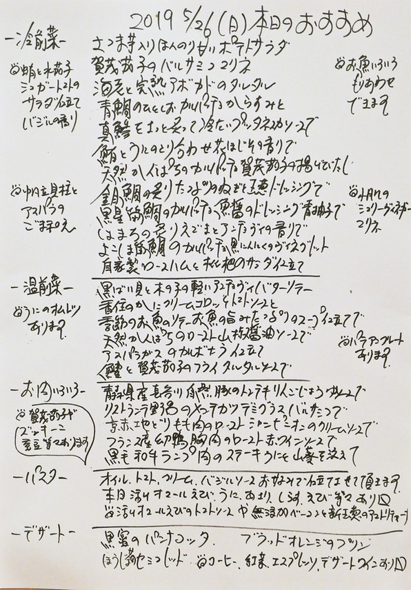 (スープ、旬の魚盛り、蟹クリームコロッケ、魚料理、肉料理、パスタ、デザート)