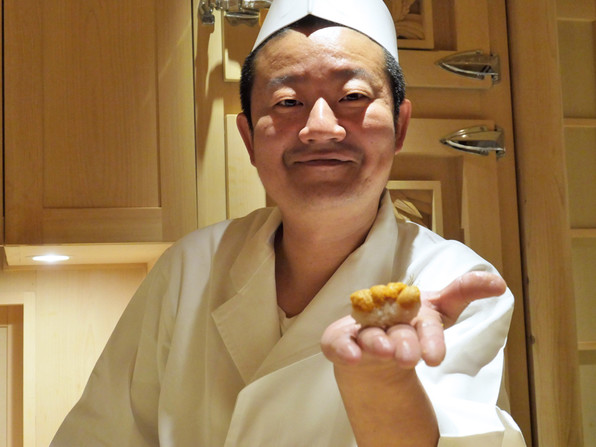 ●店主の森田忠保さんです。見惚れる包丁技、かんぺきな握りを披露してくださいました。
