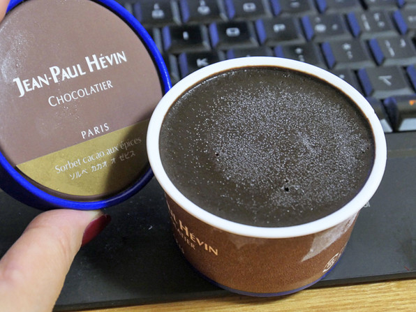 ●先日のある日、デスクトップ甘味として、精神の安定のために、ショコラのソルベを買ってきました\(^o^)/\(^o^)/