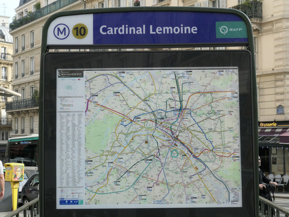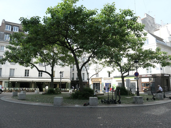 6月18日朝、まだひと気がなくガラガラのコントレスカルプ広場からスタート。夜はすさまじい喧騒となりますから別世界の感じ。歩いてカルディナル・ルモアーヌ~モンジュ通り~モベール・ミュチュアリテまで。