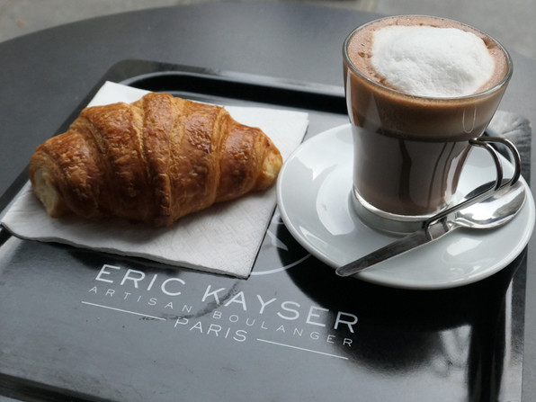モンジュ通り14番地の「エリック・カイザー」でクロワッサンとショコラショー。8番地のブランジュリの方は火曜休み。