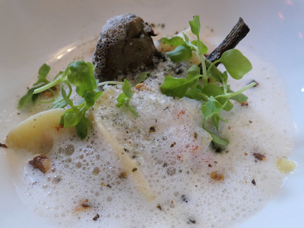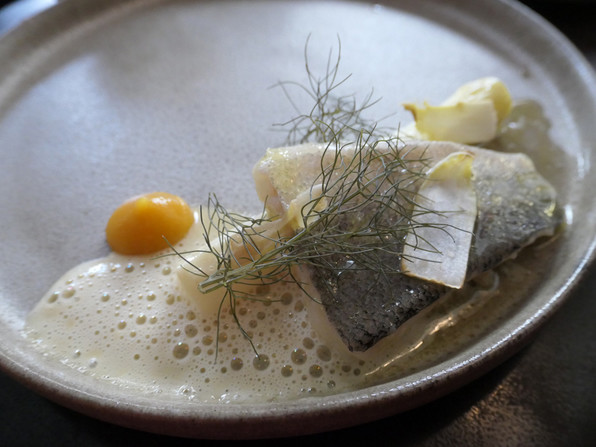 ●魚料理をひと皿プレゼントしてくださって、メルルーと言ってた、白身魚です。この火入れ加減の絶妙さに驚いた( ̄○ ̄;)( ̄○ ̄;) 仰天するほど舌触りよくてまた食べたい。