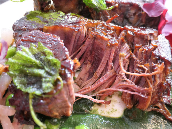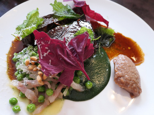 ●メイン料理にメニュー上から3番めのブフブレゼ、ほぐほぐの牛肉に、合わせてあるもの、のせてあるもの、全部全部、瞠目のおいしさと思いました。センスがいいの、塩加減も上品なの、いちいちジャストで旨いの\(^o^)/\(^o^)/