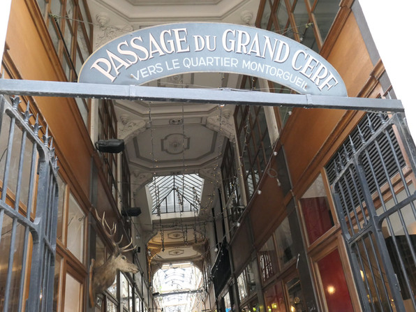 ●パサージュ、いつもジュフロワとパノラマばっかりだから違うところ行ってみましょとグランセールへ。入り口にあるカフェの名前が粋です。パサージュにかけて、ル・パ・サージュ le pas sageって「賢い歩み」という名前がついていてかわいい。