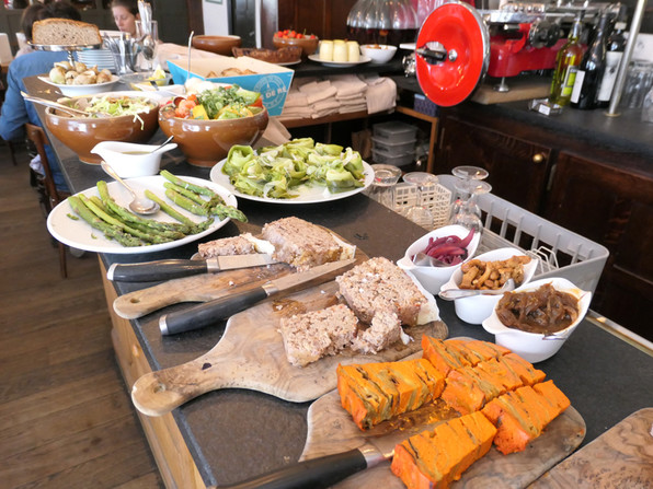 ●日曜は前菜ビュフェ式、メインに鶏肉かパンタードを選択、デセールまたビュフェ式。ほんとラッキーでした。それもヴァカンスシーズン前の日曜は今日が最後なのよ、とのこと。