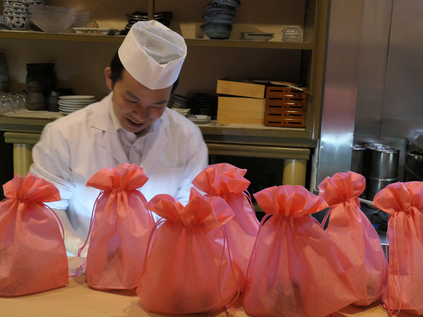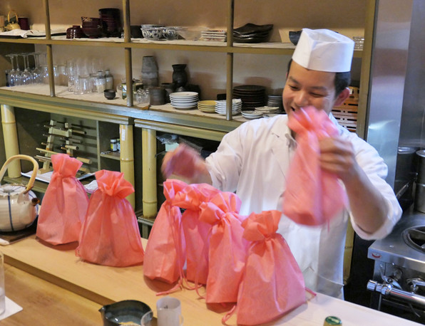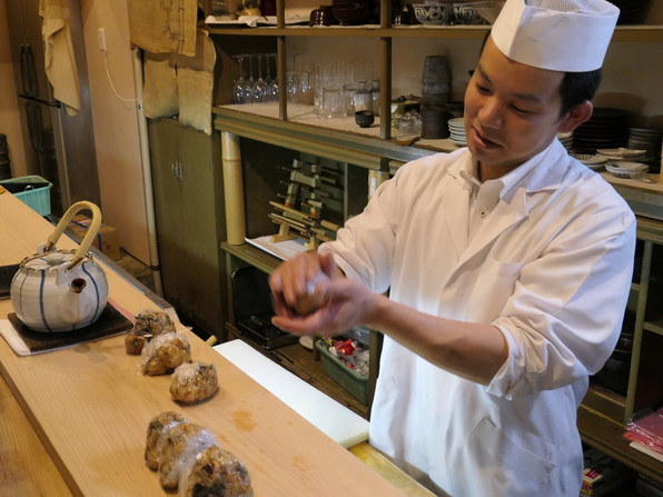 ご飯もたっぷり炊いてくださって、おにぎりのおみやげまで至れり尽くせり、いたつくのもてなし。それでいて14時前には完全に終わっていて器も片付いているの。毎回驚異的です。手が2本とは思えない店主の竹内誉裕さんです。
