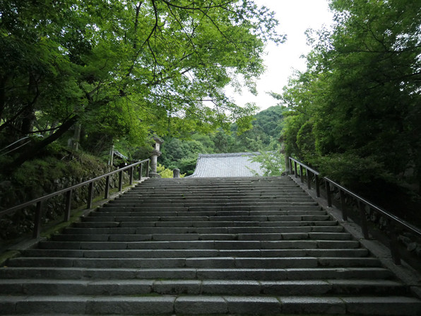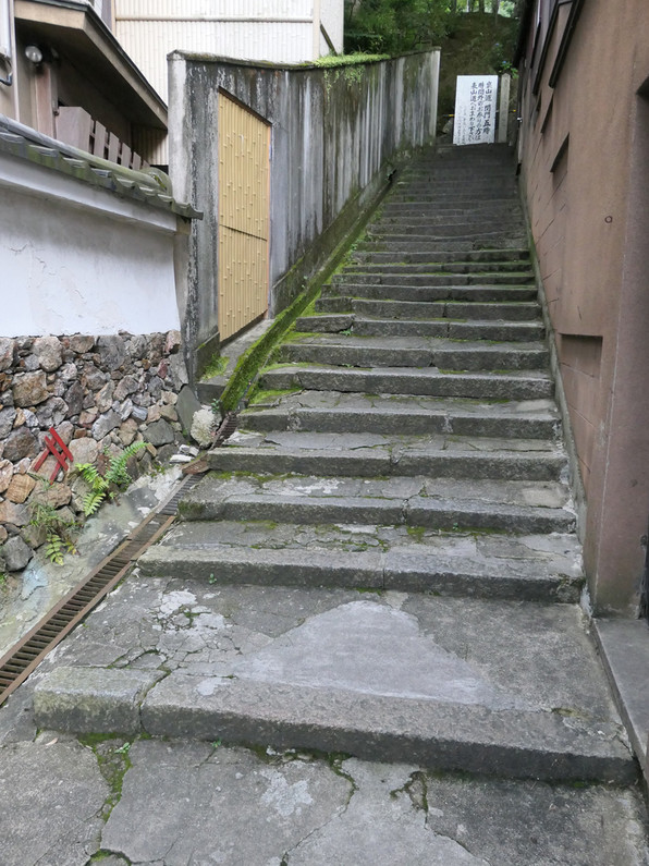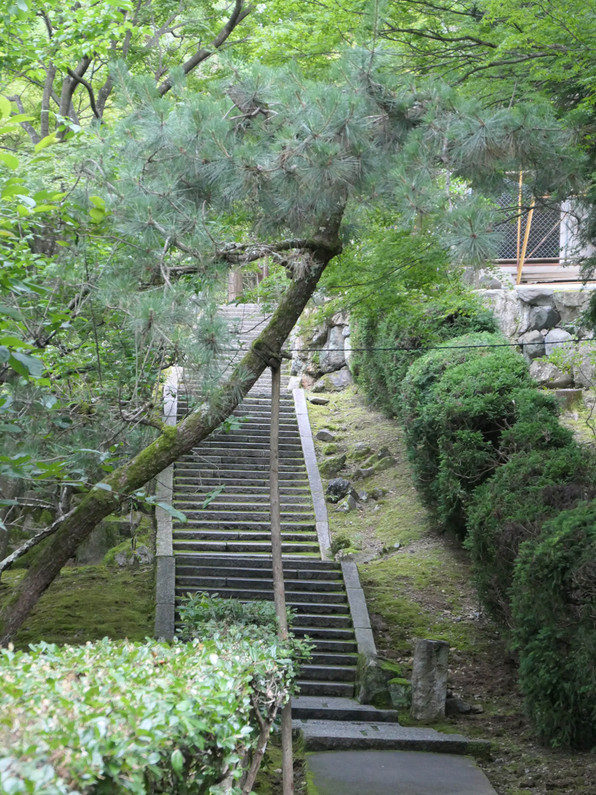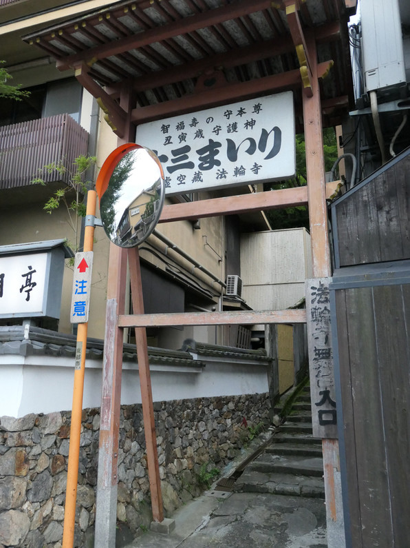 ●渡月橋を西側に渡ってすぐの場所に裏口の階段があってそこを上がって行きました。階段に次ぐ階段だけど、せっせと上がっていくと、