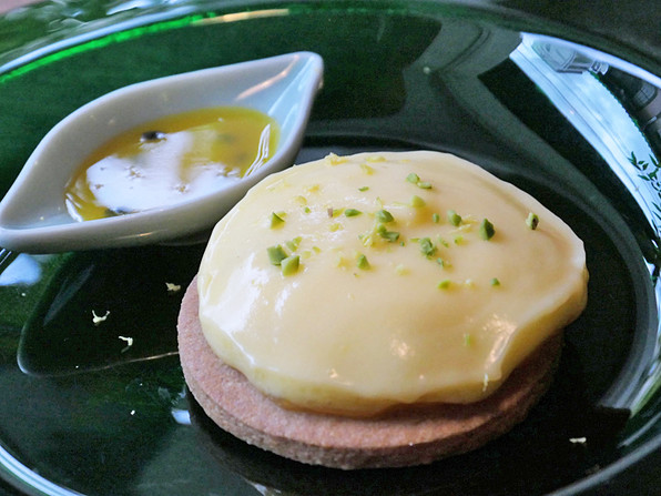 わたしは酸味系のデセールを自分から選ぶことは決してくなく、「酸いのは人生だけで十分である。せめてデセールは甘くなければならない。茶色くなければ~~!!」と常々言っているのですが(レモンがきらい、ベリー類が好きではないということではありません。誤解なきよう、念のため)、それでも今回は「遊形」さんの新作、せっかくすすめてくださったのだからといただいてみたら・・・もうもう、わたしにおける酸味デセールの歴史を塗り替える味でした。
