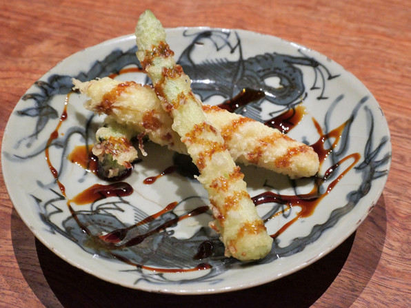 ●油ものは、アスパラガス、ヤングコーン、コーンの枕になっているのがゴーヤです。
