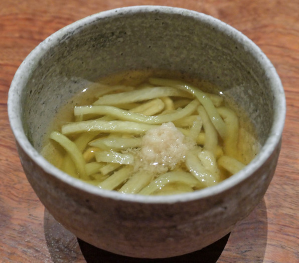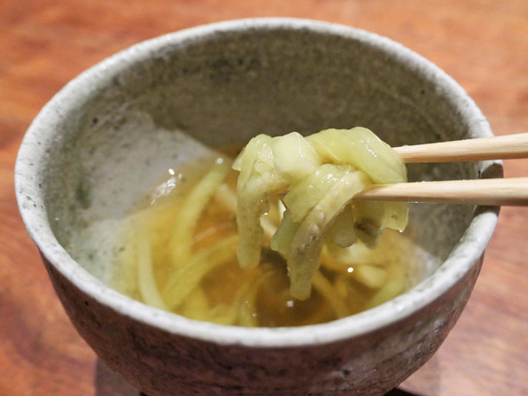 ●茄子を細造りにして、おだしを張って素麺のようにいただく冷たい一品。おだしも全飲みいたしました。