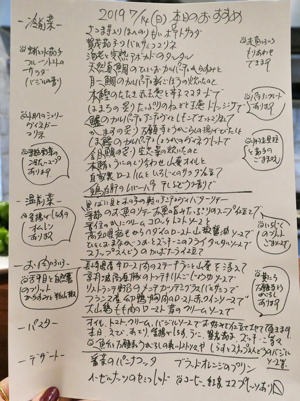 7月14日(日)は le 14 juillet 、フランス革命記念日だけど、イタリアンの「リストランテ 野呂」20時半~。多分126回めくらいww