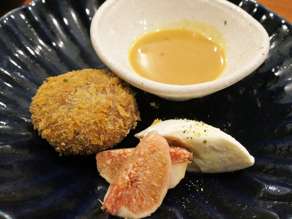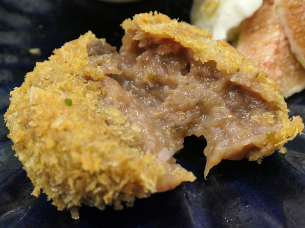 ●コロッケその12 黒いちじくのコロッケ リコッタ、胡麻ソース
