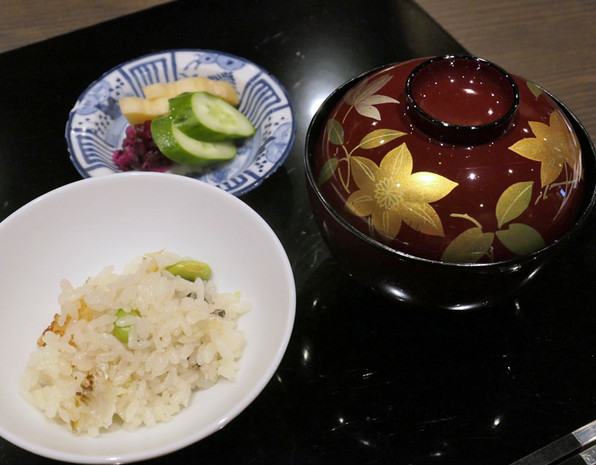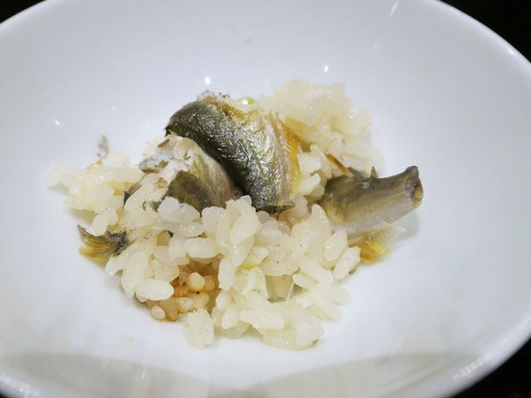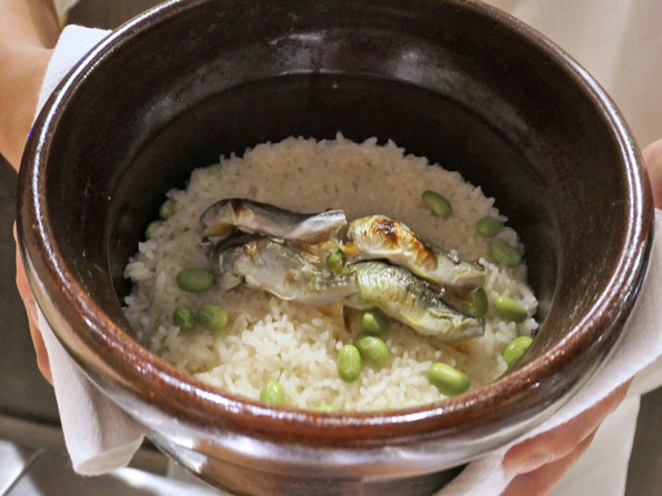 ●琵琶湖の若鮎のご飯、赤だし、香の物