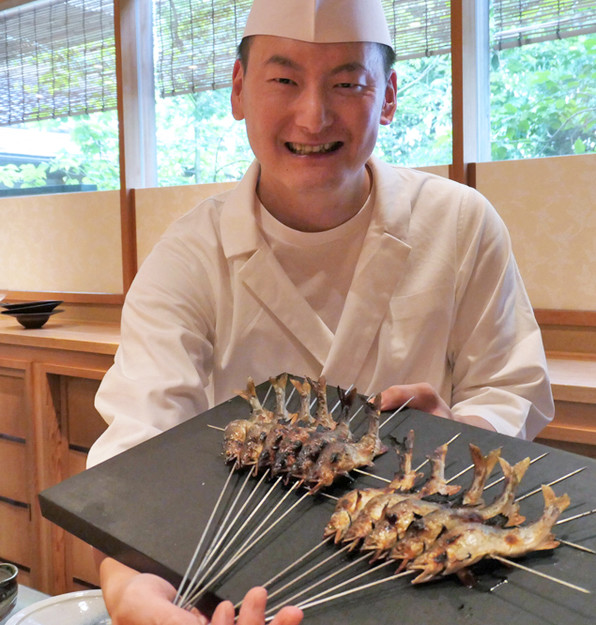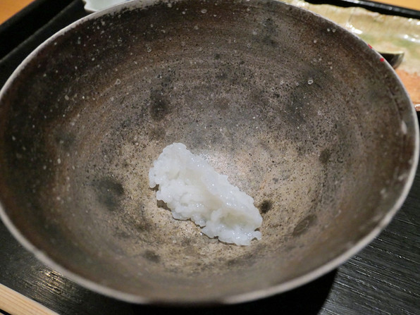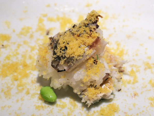 ●鮎の身の部分ともち米と合わせて、上から自家製のからすみをはらはらと。