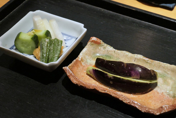 ●甘鯛、皮目は油で揚げて、身は炭火焼き。賀茂茄子炊いたのをからめもっていただきます。