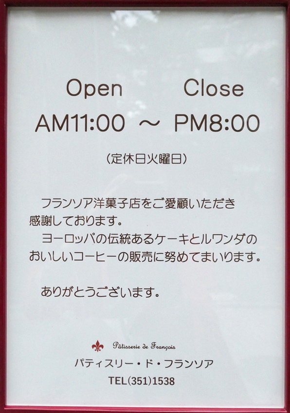 ●西木屋町通四条下ルの「フランソア喫茶室」さんの南隣に、「フランソア洋菓子店」、本日オープン\(^o^)/\(^o^)/