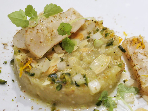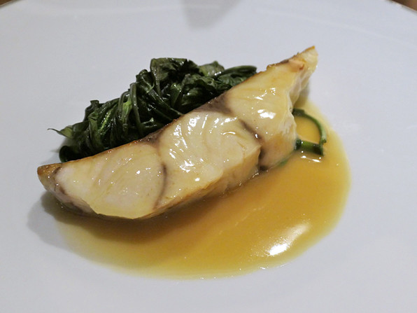 ●ごま笛吹鯛のポワレ パスティスのソースに空芯菜。