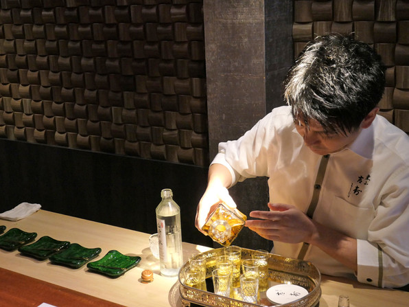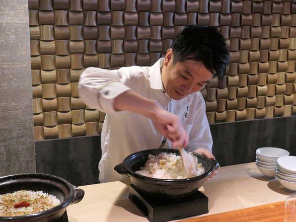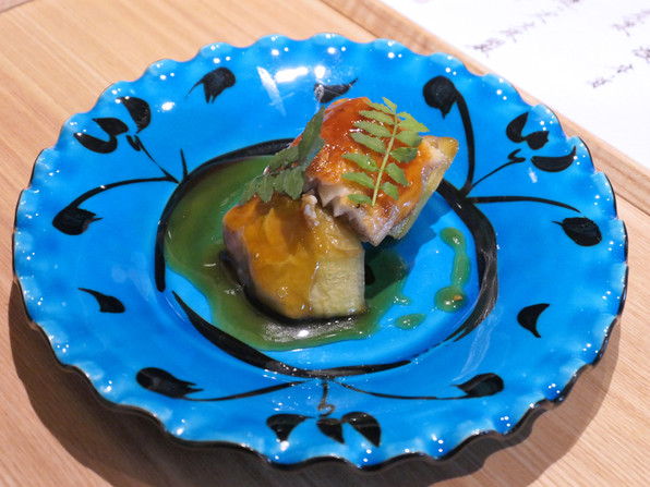 顔くらいある大きな岩牡蠣に始まって、毛蟹、鮎、うなぎ、鱧、あわびと、すごい勢いで出してくださいました。