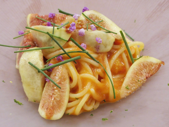 ●パスタその104、冷たいトマトのスパゲッティ、今回はいちじくと。