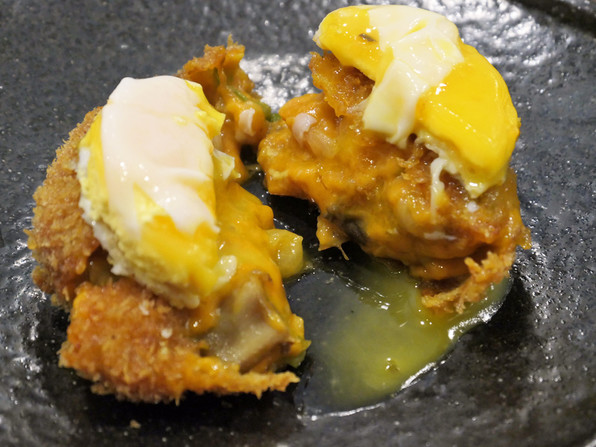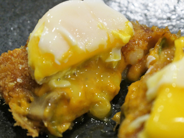 中のベシャメルがナポリタン味になってるの、止まらないの、そこに卵の黄身がとろりんと。
