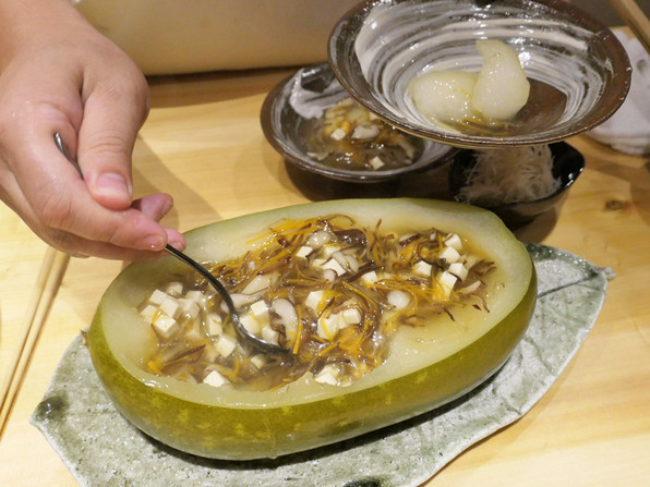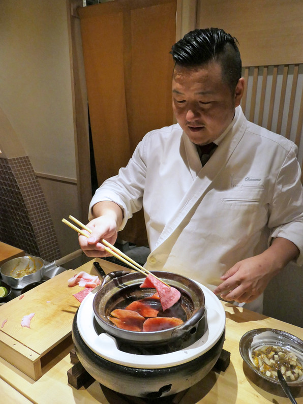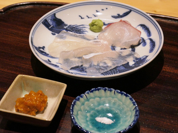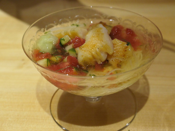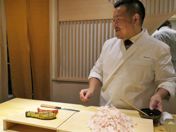 で、案内するわたしがそれを食べてないわけにいかないでしょう~~、ということで今週初めの夜に5万円コースに行ってきました。まだ明るい18時に入って、ひたすら食べることだけに集中しました。