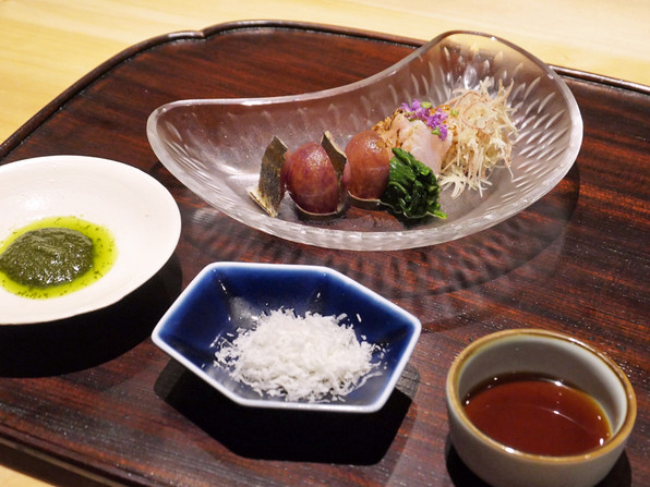 ライム醤油、パルミジャーノ、ジェノヴェーゼソース(実は紫蘇と胡桃)