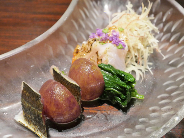 土佐酢と、白ワインヴィネガーのジュレ、オリーヴオイル、すだち