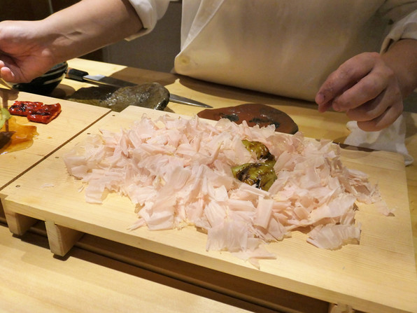 ●こちらの名物、季節で具材を変えて供される、ふわふわふわかつお節のコーナー\(^o^)/\(^o^)/