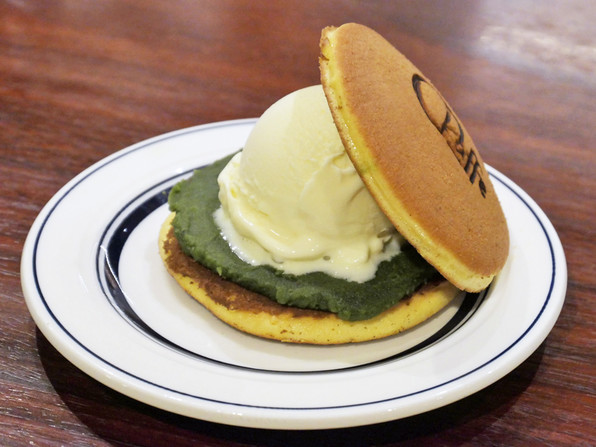 ●「オカフェ キョウト」Okaffe Kyotoさんの新しい嵐山店の、パンどらの抹茶あん、アイスクリームと。(本店でもいただけます。)