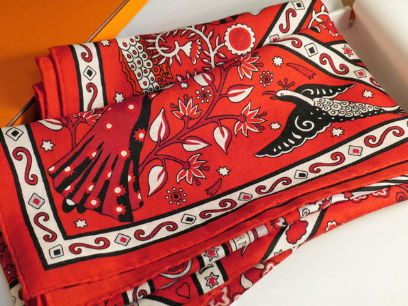 ●追記です:フランスのパティスリーというシリーズ、これはいつもの 90×90cm なのだけど(370ユーロ)、わたしはこの模様に関しては、赤よりもオレンジよりも、茶色がいいと思うなあ。