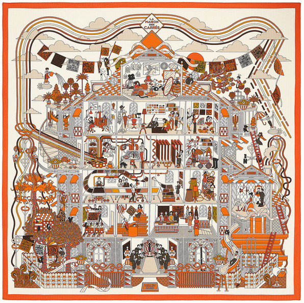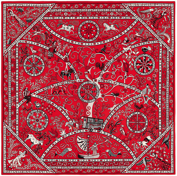 ●Peuple du Vent, 風の民という名前がつけられた、細かい絵がかわいくてたまらないショールです。(エルメスフランスさんのサイトの写真を拝借<(_ _)>)