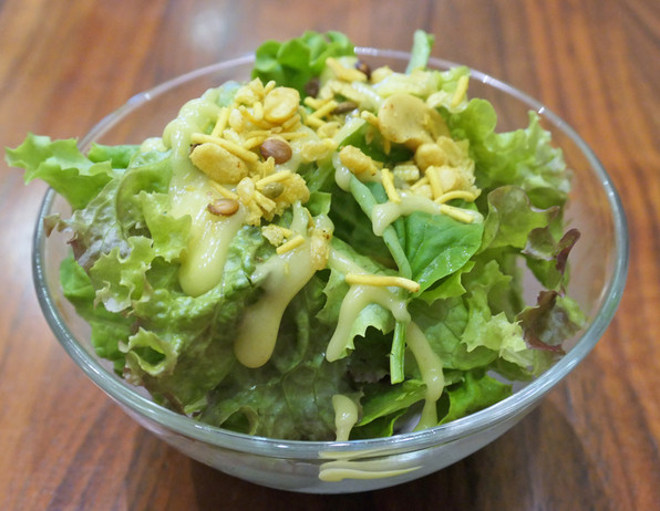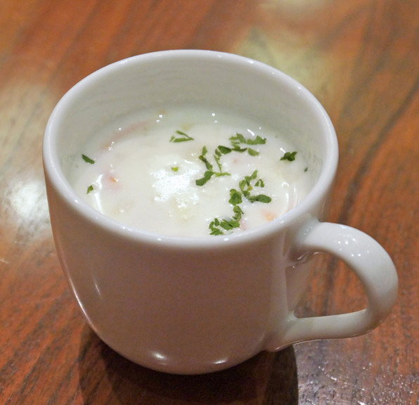 ●ミニサイズでクラムチャウダーとたっぷりのサラダ、食後にスパイスコーヒー(シナモン、スターアニス、グリーンカルダモン)が付きました。