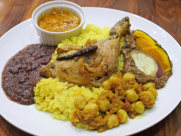 「カレーヴェルディ」さん(正式名称は多分「ヴェルディ 京都造形芸大店」)で、4種類のカリープレート 1360円、あり得ないお値打ちの皿と思いました。