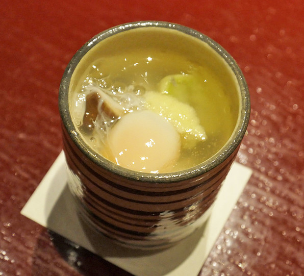 ●百合根、銀杏、椎茸など薄葛とうずらの温泉玉子