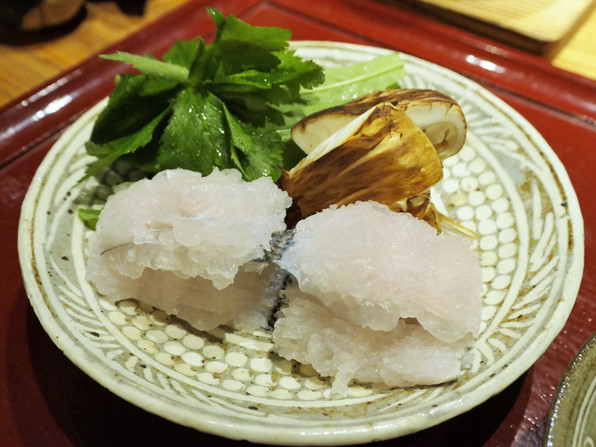 ●鱧しゃぶ 松茸、壬生菜、三つ葉と