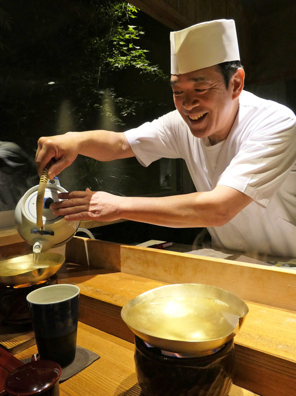 ●おだしを注いでくださって鱧しゃぶの用意です。