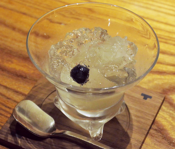●梨、梨を焚いただしのジュレ、ブルーベリー