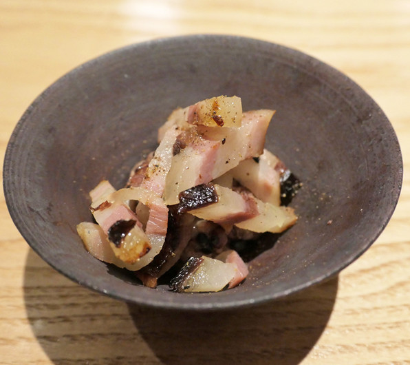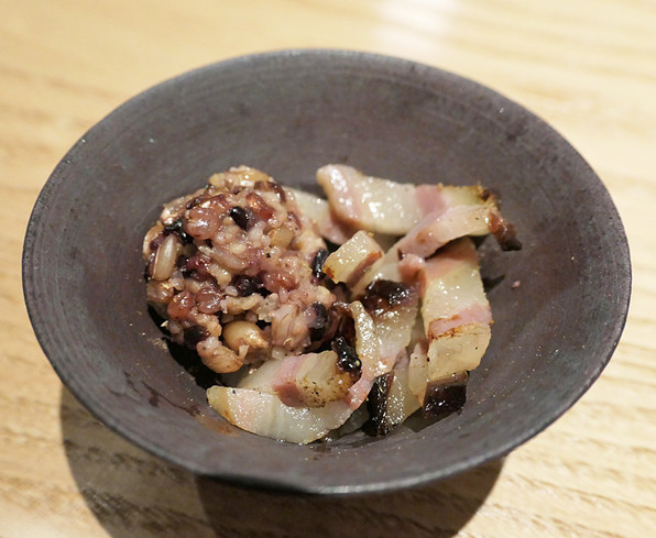●これがまた美味極まりました、鱧に豆鼓(これは一休寺納豆とのこと)を合わせて炒めたもの。むかご、銀杏と。鱧は淡路島とのことでした。