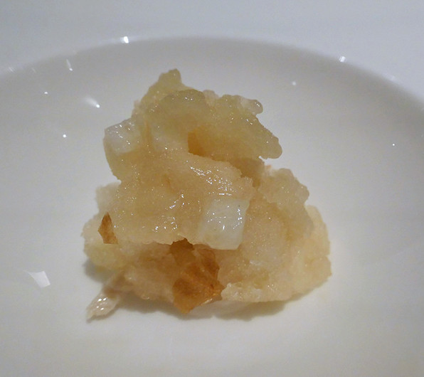 ●下のソルベは、しゃりしゃりの食感の梨に、辛味のソルベ。八角、山椒、とうがらし。