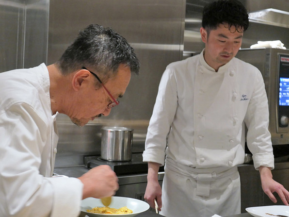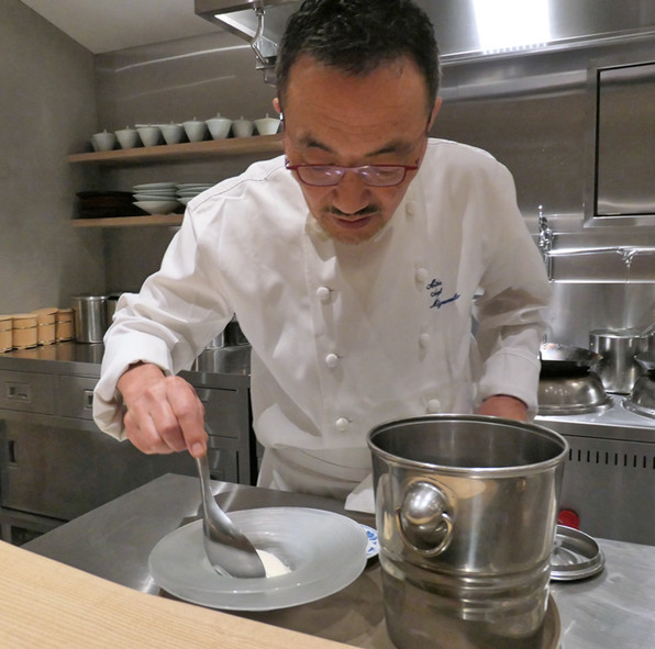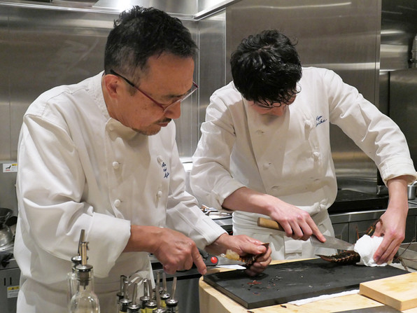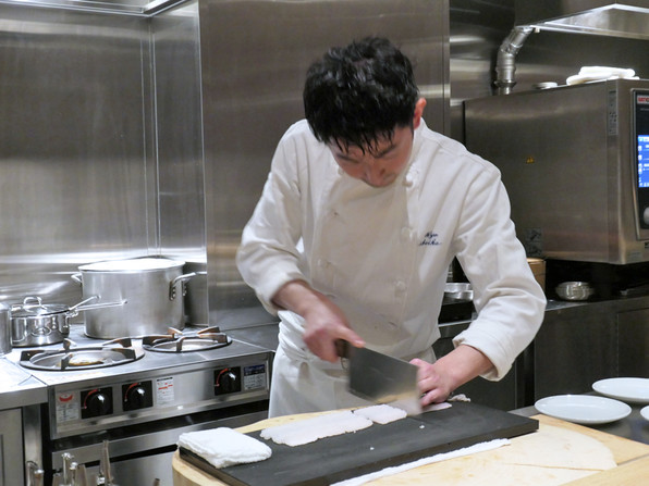 ●鱧の骨切りをするのは2番手にして元「菊乃井」さん(10年修業)の、酒井研野(さかいけんや)さんです。